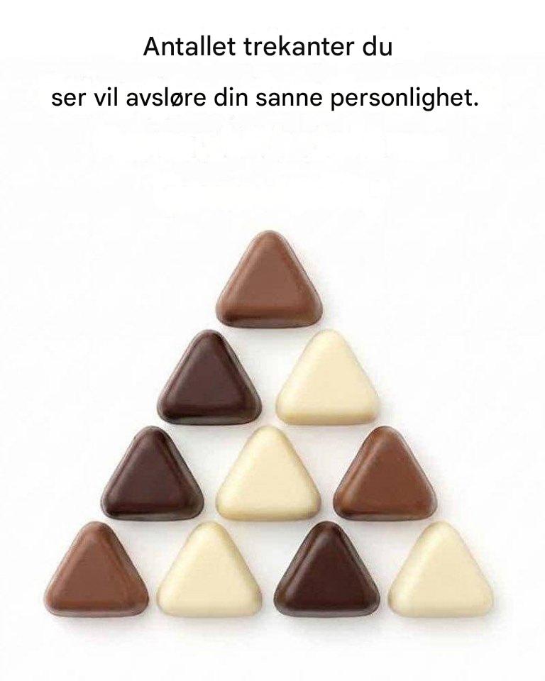 Ved første øyekast virker bildet enkelt: et ordnet arrangement av sjokoladefargede trekanter stablet for å danne en større trekantet form. Men ikke la deg lure: dette visuelle puslespillet har fått folk til å stoppe opp, se og stille spørsmål ved sine egne oppfatninger.