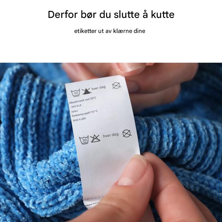 Se for deg et elektrisk apparat uten en bruksanvisning. Det er akkurat det du gjør når du fjerner etiketten fra klærne dine. Den inneholder vaskeanvisninger: vasketemperatur, stryking, tørketrommel osv. Hvert symbol teller: vask i varmt vann i stedet for kaldt, og favorittskjorten din kan havne i søpla.