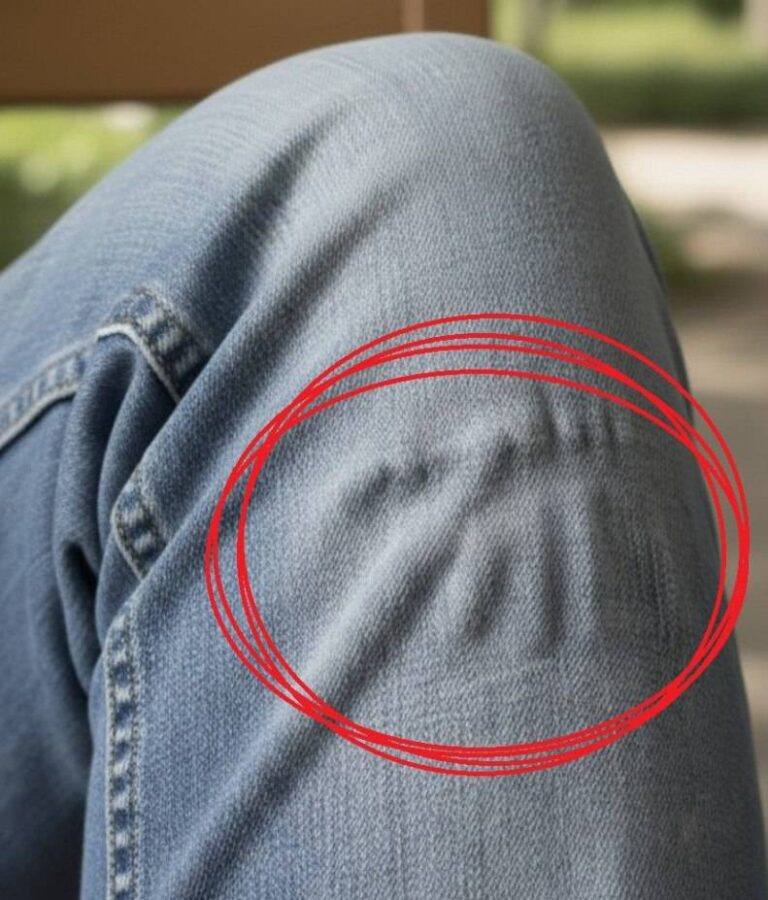I stedet for glatt denim ser vi merkelige rynker, rysjer og bølgete kanter – de ser ut som de har overlevd en kamp i vaskemaskinen.