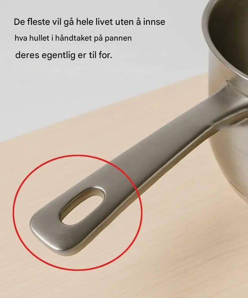 I den travle verdenen av kulinarisk innovasjon, hvor hver eneste kurve og kontur på kjøkkenutstyr er omhyggelig utformet, er det én tilsynelatende uskyldig detalj som ofte unnslipper vår oppmerksomhet: det beskjedne hullet i håndtaket på grytene og pannene våre. Du har kanskje sett det, kanskje til og med lurt på det, men du har sannsynligvis aldri helt forstått dets mange funksjoner. Vi har en tendens til å avfeie det som en ren design-særegenhet, en ren siste-liten-idé i det store spillet av kjøkkendingser. Likevel har denne tilsynelatende uskyldige detaljen en rekke praktiske bruksområder som mange av oss, selv erfarne kokker, er fullstendig uvitende om. La oss legge ut på en reise for å avmystifisere dette uanselige hullet og utforske de geniale måtene det forbedrer våre kulinariske opplevelser.