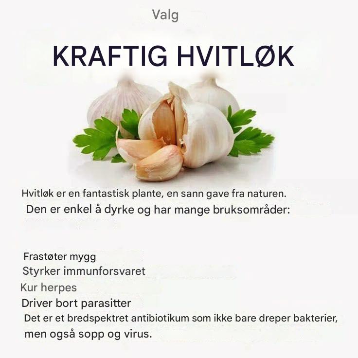 Styrker immunforsvaret: Hvitløk har antibakterielle, antivirale og soppdrepende egenskaper som kan bidra til å styrke immunforsvaret og forhindre infeksjoner.