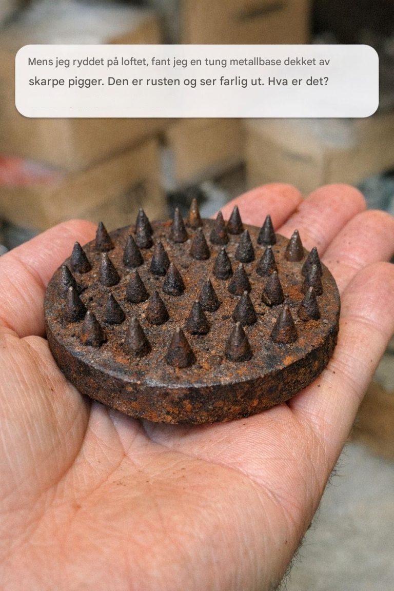 Til tross for det truende utseendet, er denne spisse gjenstanden mest sannsynlig en blomsterfrosk – et verktøy som brukes i blomsterarrangementer for å holde blomster i en vase. Blomsterfrosker var spesielt populære tidlig og midten av 1900-tallet, før blomsterskum ble allment tilgjengelig.