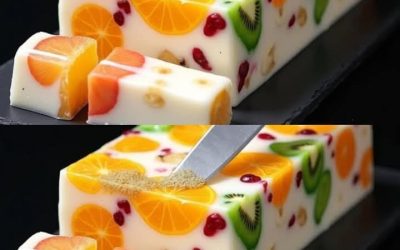 Ingredienser: Mandariner, kiwi, persimoner, grapefrukt , eple , banan; 8 g agar-agar + 50 ml vann , 350 ml melk…