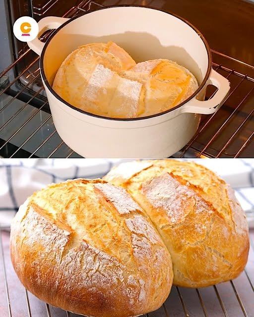 Det finnes ingenting som den hjemmelagde aromaen som sprer seg gjennom kjøkkenet mens det stekes. Denne enkle brødoppskriften gir en nydelig gyllenbrun farge! Det er et klassisk brød uten elting. For å lage det trenger du mel, vann, salt og gjær. Bare lag deigen, la den heve og stek til den er gyllenbrun. Det er vanskelig å tro at du bare trenger fire ingredienser og minimal innsats for å lage brød som smaker som om det kommer rett fra bakeriet. Gyllent og sprøtt på utsiden og mykt og mørt på innsiden. Nyt det som det er med ekte smør og en fruktsyltetøy, eller server det som tilbehør til en solid suppe. Det er en av de oppskriftene som får deg til å føle deg som en ekte baker!