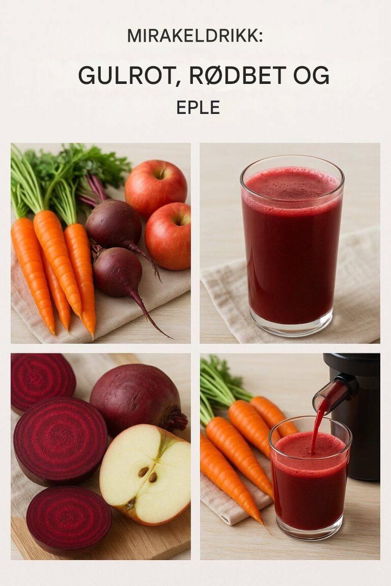 Ønsker du å forbedre helsen din på en naturlig og deilig måte? Kombinasjonen av gulrot, rødbeter og eple hylles ofte som en «mirakeldrikk» på grunn av dens rike helsefordeler. Denne livlige juicen er fullpakket med essensielle vitaminer, mineraler og antioksidanter, noe som gjør den til en game-changer for din generelle velvære.